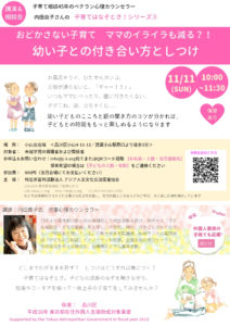 November 11 Event: Parenting and Discipline with Young Children - Puzzle Series for Child Rearing ③ Posted on October 23, 2018 Last Updated September 1, 2023 Author jii Category All Category Life with Children Share Tweet Copy