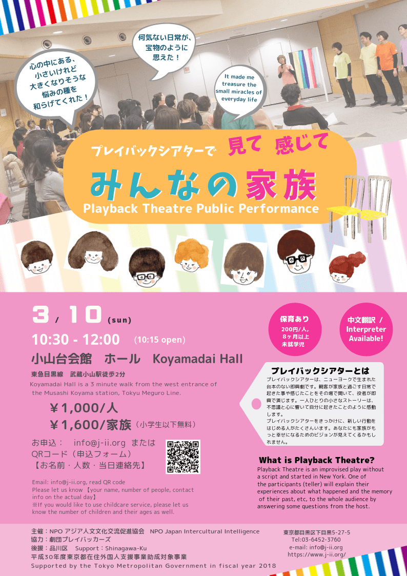 In Playback Theatre, the audience shares their experiences from their daily lives with family.