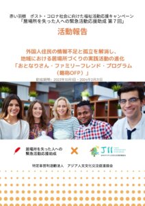 आकाइ हाने पोस्ट-कोरोना समाजतर्फको कल्याणकारी गतिविधि समर्थन अभियान "आवास गुमाएका व्यक्तिहरूको लागि आपतकालीन गतिविधि समर्थन अनुदान (सातौं पटक)" को अनुदान प्राप्त गरी, 2023 अक्टोबरदेखि 2024 मार्चको अन्त्यसम्मको अनुदान अवधि समाप्त भएपछि, हामीले गतिविधि प्रतिवेदन सार्वजनिक गरेका छौं।