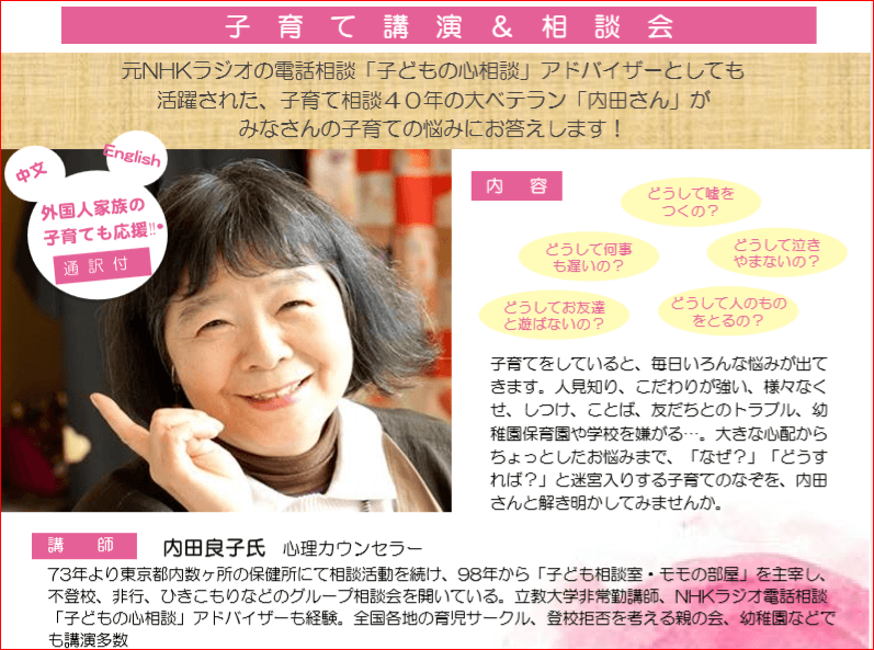 अंग्रेजी र चिनियाँ भाषाको अनुवाद उपलब्ध छ, त्यसैले जापानमा बसोबास गर्ने विदेशी परिवारहरू पनि सजिलैसँग सहभागी हुन सक्नुहुन्छ!