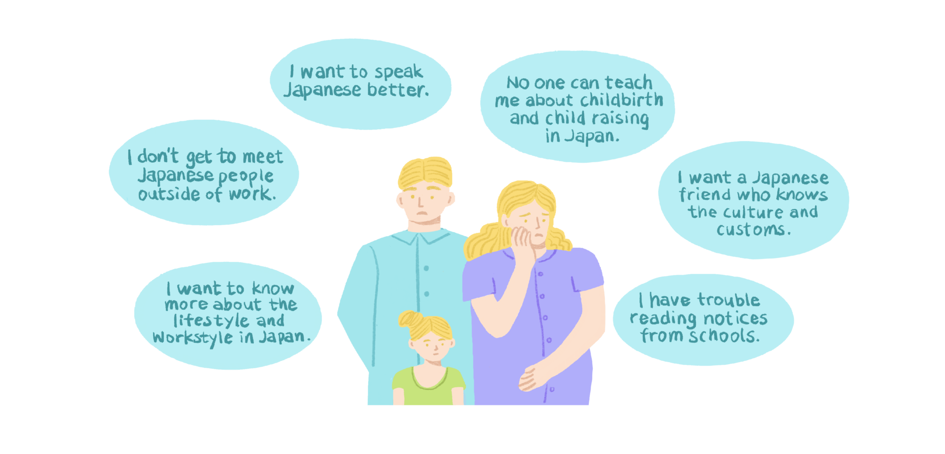 परिवारको साथ विदेशीहरूसँग अन्तरक्रिया गरेर, म चाहन्छु कि मेरा बच्चाहरूले संसारमा धेरै मूल्यहरू छन् र जापानी भाषा बोल्नेहरू मात्र छैन भन्न्ने अनुभव गरून् ।